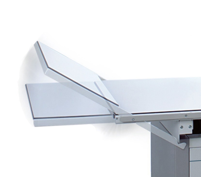 Das Visiovet Flex Röntgensystem besteht aus einem geschlossenen Röntgentisch mit schwimmender 4 Wege Tischplatte und elektromagnetischen Bremsen mit einer fixen Buckylade für Kassetten und Raster und mit voll beweglicher und drehbarer Röhre. Der Röhrenstand kann auch vertikal entlang der Tischachse bewegt werden, womit quasi jede Aufnahmesituation gemeistert werden kann. Die Bedienungskonsole befindet sich frontseitig und ist über die eingestellte Organautomatik, und über manuelle Eingabe der Parameter (kV, mA, t, mAs) steuerbar. Der Tisch lässt sich als Option beidseitig um 35cm verlängern und wird somit auch zum komfortablen HD-Aufnahmeplatz auch für für die größten Hunde.
